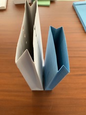 白:27.5(上部折り込み部分含む) x12.6、まち4.5