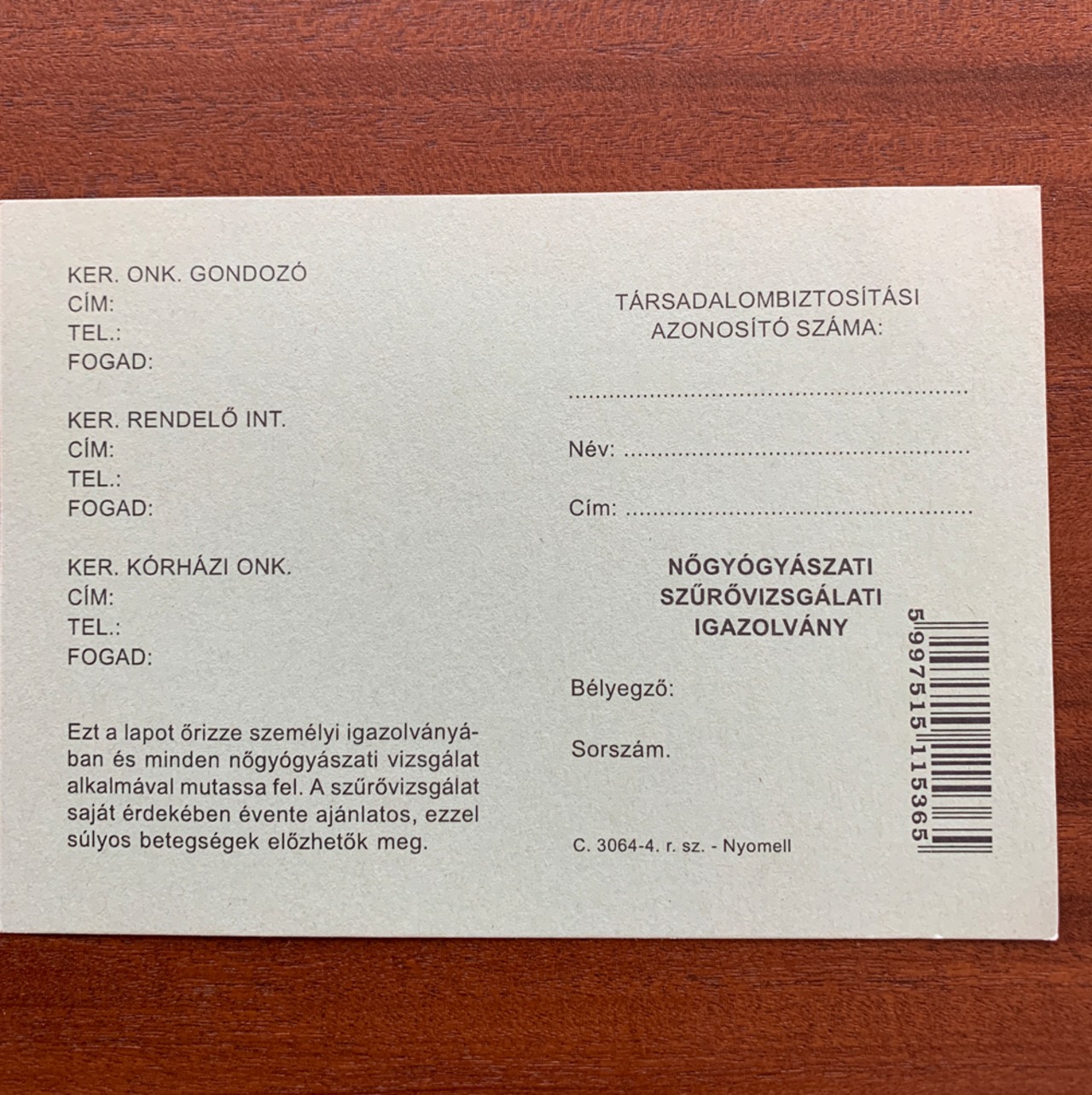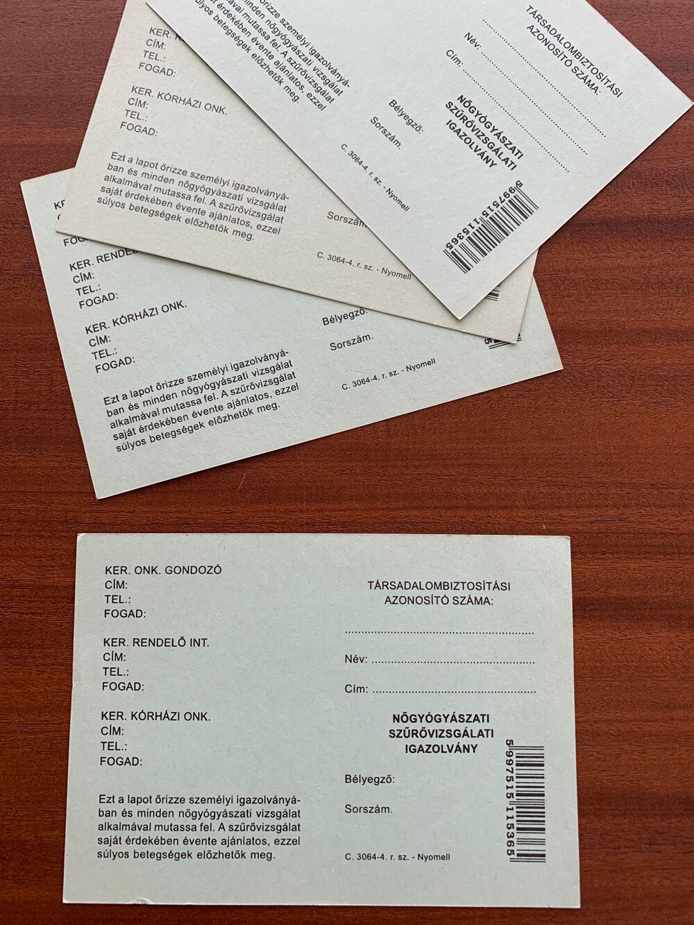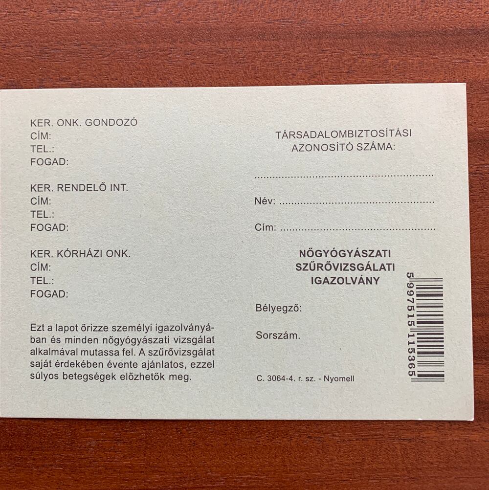 グリーン1:ハンガリー 婦人科 検診票 カード 医療系伝票 医療系紙もの(デッドストック)