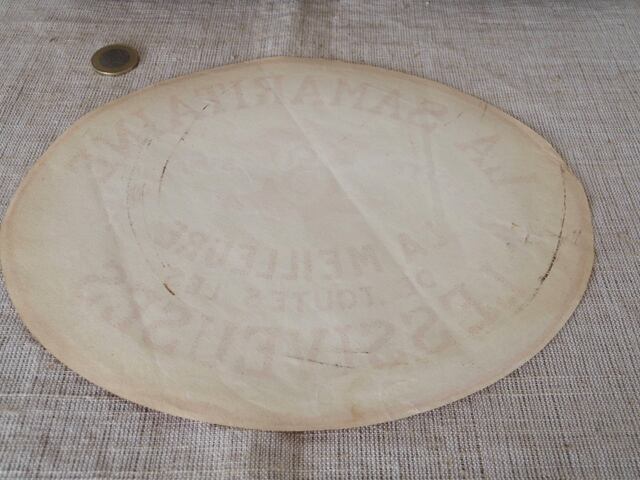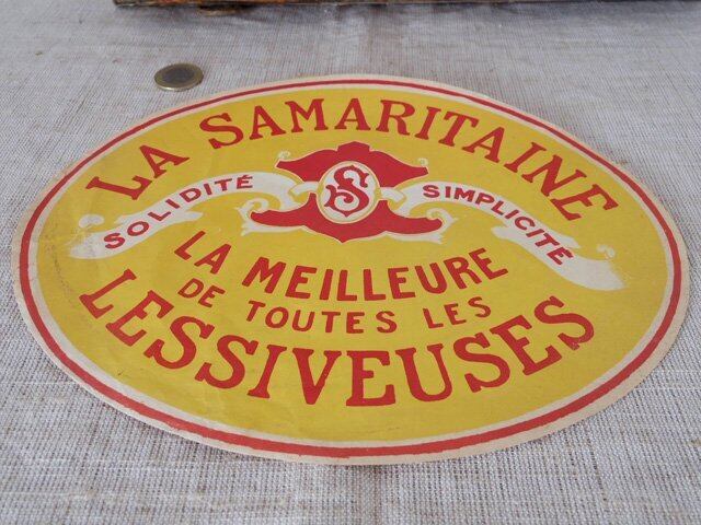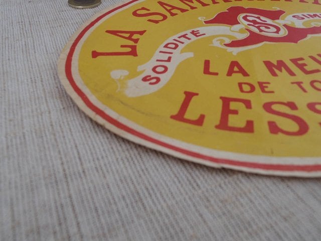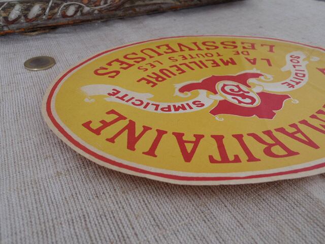 フランス 1960年代 ブリキバケツ(洗濯機)のラベル 黄色 1France yellow oval vintage paper papir