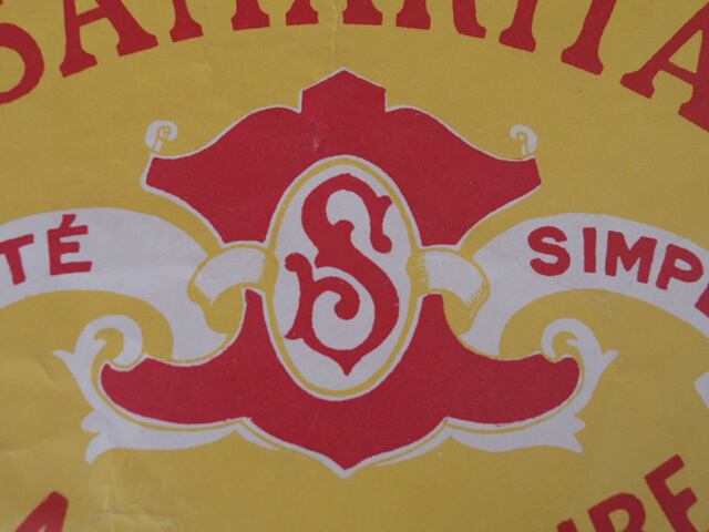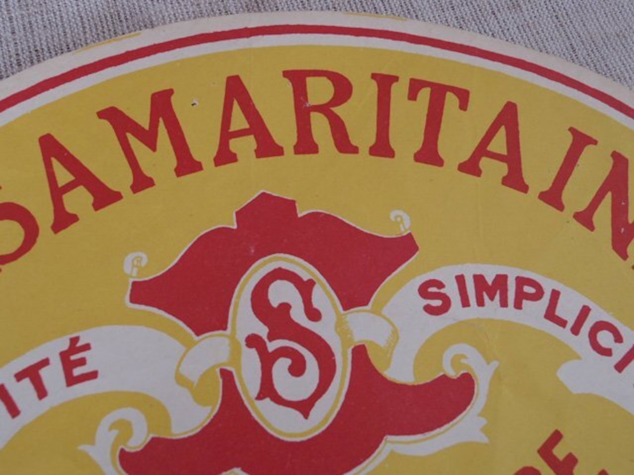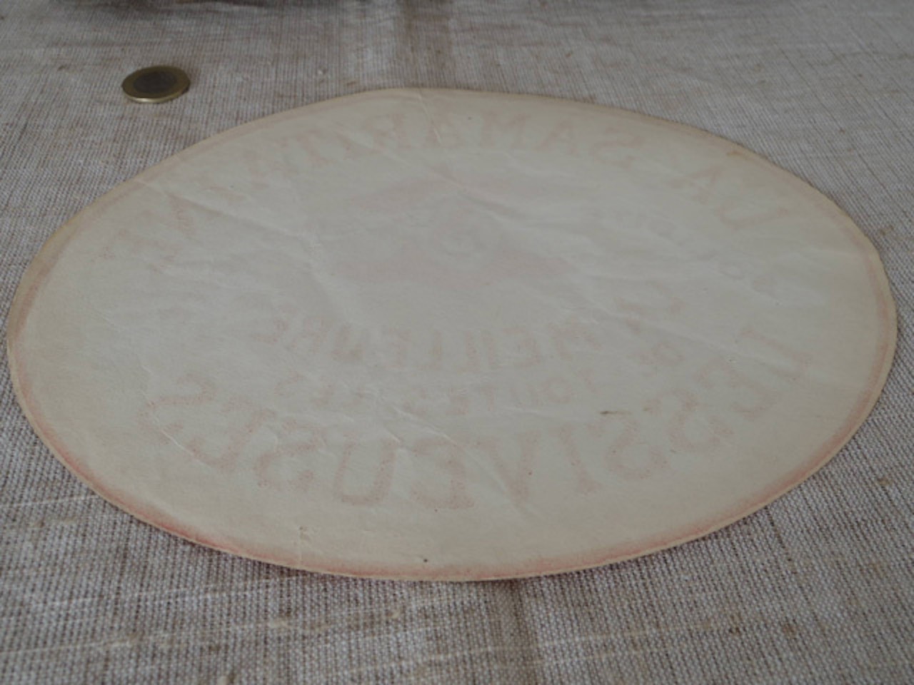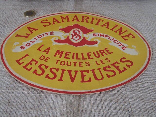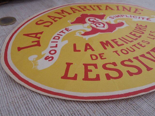 フランス 1960年代 ブリキバケツ(洗濯機)のラベル 黄色 2 France yellow oval vintage paper papir