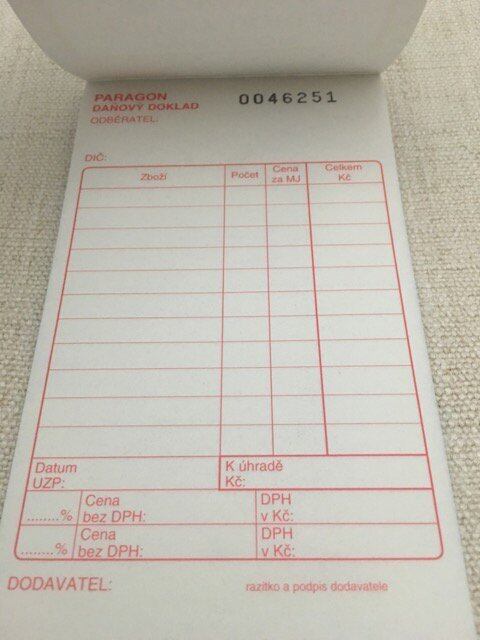 ・このタイプはチェコでは一般的なタイプのようで、このシリーズで 税付き、税なし、複写式税付き、複写式税なし、ナンバリングありなどいろいろあり、旧タイプと、デッドストックなどが混在しています。
