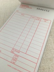 ・ナンバリングのついた複写式赤字のパラゴン(伝票)