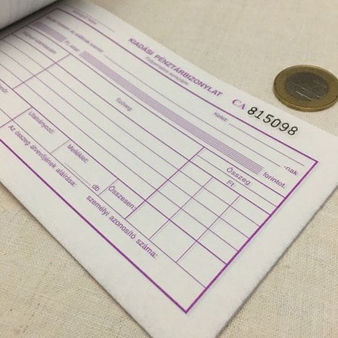 ハンガリー 出金証明書 伝票(ブック)横長 複写 2色 50枚(25組) ナンバリング