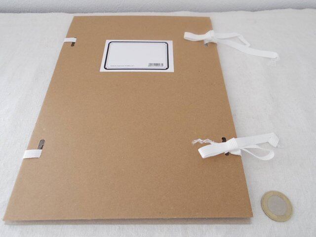 ・A4サイズの紙を挟む時は、リボンの間には挟まず、厚紙と厚紙の間に挟みます。(画像6、7、8はA4サイズのフォルダーにA4サイズのコピー用紙を1センチほど挟んでいます。)