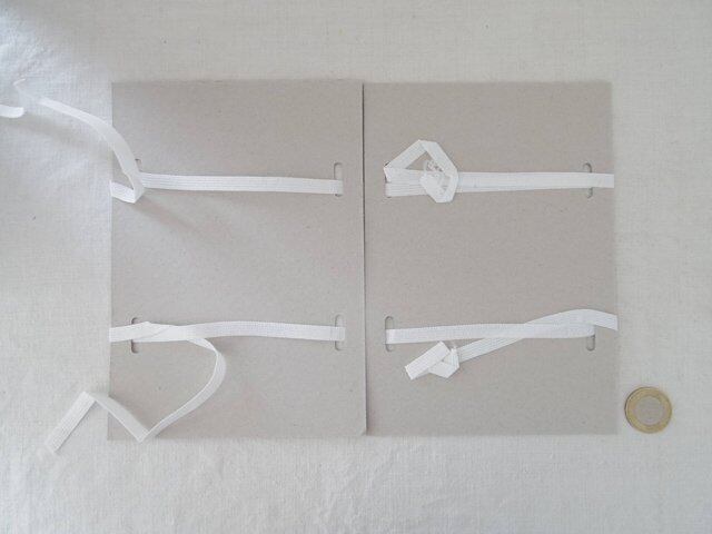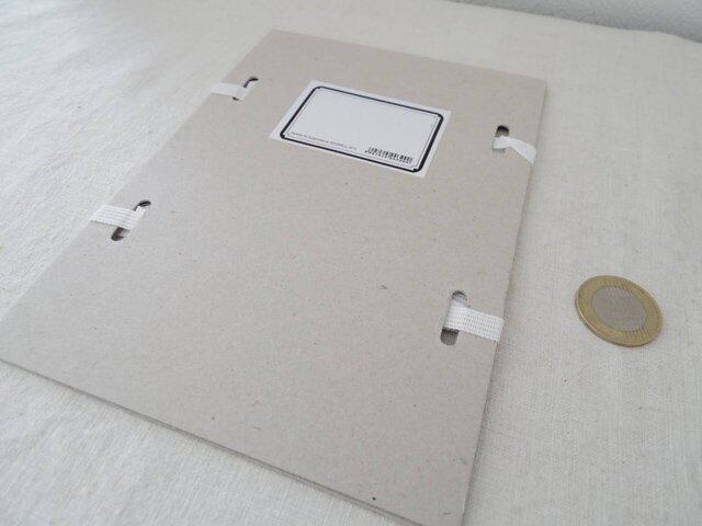 ・A5サイズの紙を挟む時は、リボンの間には挟まず、厚紙と厚紙の間に挟みます。(画像6、7、8はA4サイズのフォルダーにA4サイズのコピー用紙を1センチほど挟んでいます。)