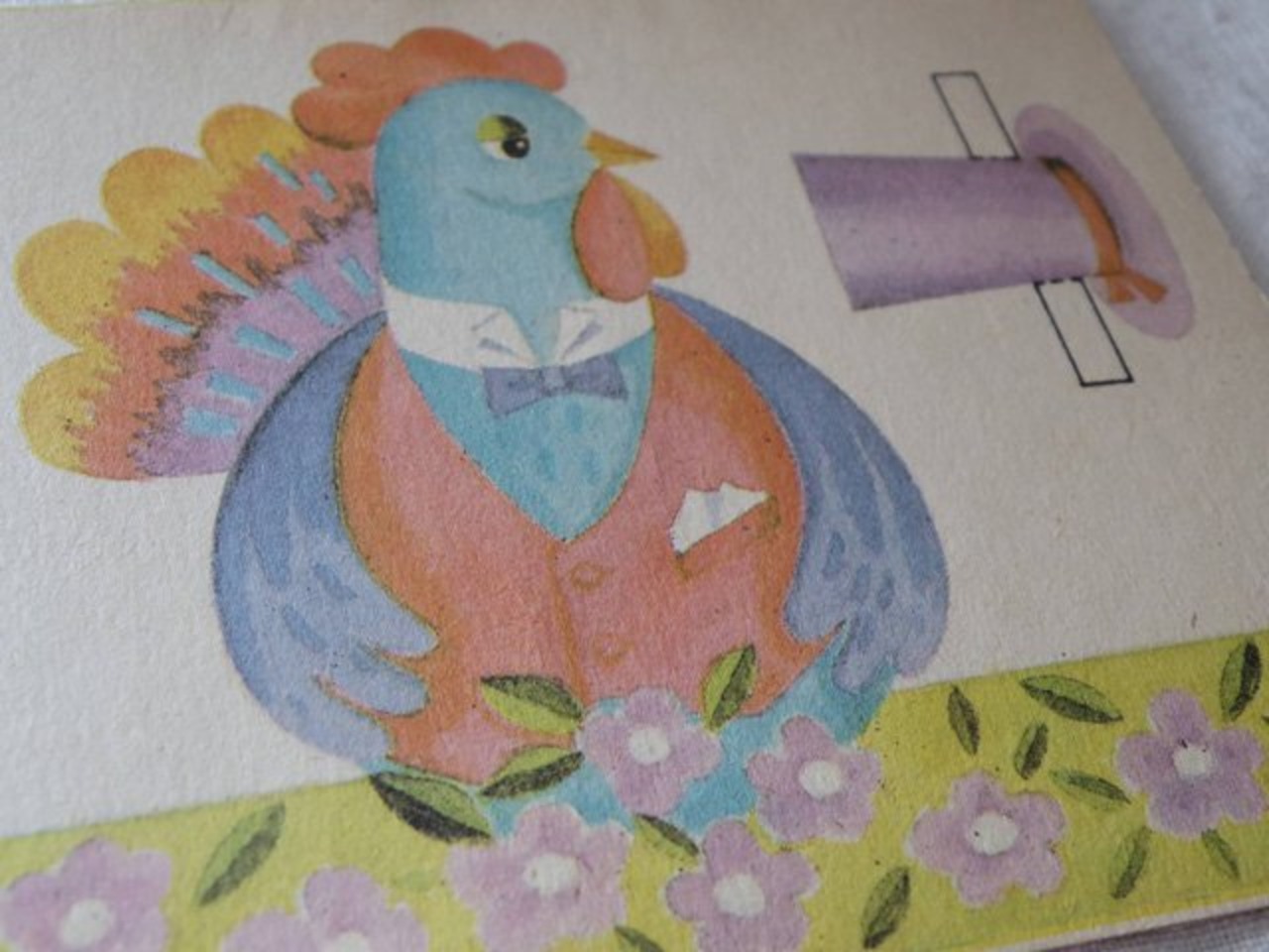古くて黄みが濃い厚紙、味のあるカラープリント